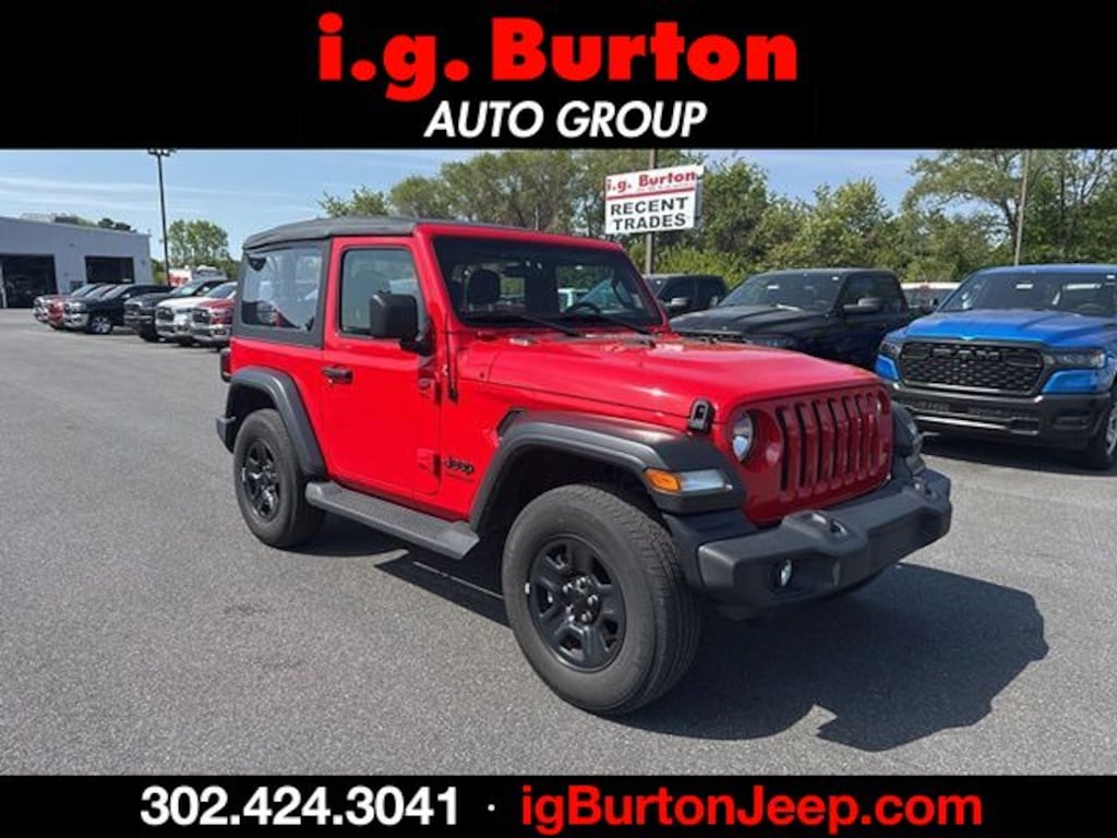 !!!((( SEE IT AT THE MILFORD JEEP LOCATION!!!)))!!!, ***THIS VEHICLE IS SCHEDULED TO LEAVE FOR MANHEIM AUTO AUCTION AND IS BEING OFFERED AT WHOLESALE PRICE, Wrangler Sport, 2D Sport Utility, 2.0L I4 DOHC, 8-Speed Automatic, 4WD, Firecracker Red Clearcoat, Black Cloth, Quick Order Package 22B Sport, Quick Order Package 23B Sport. Recent Arrival! 2022 Jeep Wrangler Sport Since 1908, i.G. Burton Auto Group has served Delmarva and its surrounding communities with outstanding sales and service as its longest-standing family-owned and operated dealer group. See why we proudly say, "Nobody Beats a Burton Deal! NOBODY!"