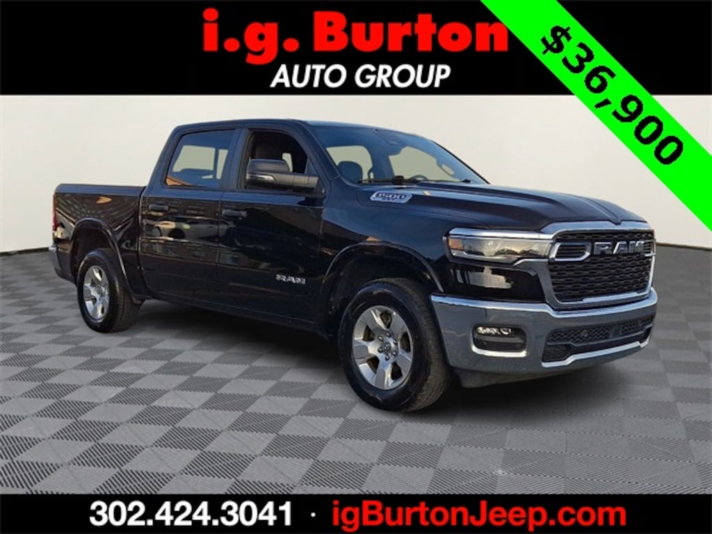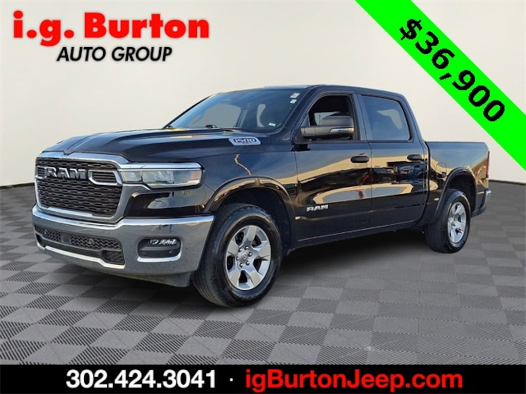 *CERTIFIED, !!!((( SEE IT AT THE MILFORD JEEP LOCATION!!!)))!!!, ***THIS VEHICLE IS SCHEDULED TO LEAVE FOR MANHEIM AUTO AUCTION AND IS BEING OFFERED AT WHOLESALE PRICE, 1500 Big Horn/Lone Star, 4D Crew Cab, 3.0L I6, 8-Speed Automatic, 4WD, Diamond Black Crystal Pearlcoat, Black Cloth, 115V Auxiliary Power Outlet, 115V Auxiliary Rear Power Outlet, 12" Touchscreen Display, 2nd Row In Floor Storage Bins, 400W Inverter, 4G LTE Wi-Fi Hot Spot, 9 Amplified Speakers w/Subwoofer, Air Conditioning ATC w/Dual Zone Control, Apple CarPlay, Auto Power-Folding Mirrors, Auto-Dimming Exterior Driver Mirror, Auto-Dimming Rear-View Mirror, Big Horn Level 2 Equipment Group, Black Exterior Mirrors, Black Premium Power Mirrors, Cluster 7.0" TFT Color Display, Configurable Drive Mode, Connected Travel & Traffic Services, Connectivity - US/Canada, Convex Wide-Angle Exterior Mirror Insert, Exterior Mirrors Courtesy Lamps, Exterior Mirrors w/Heating Element, Exterior Mirrors w/Supplemental Signals, Glove Box Lamp, Google Android Auto, GPS Antenna Input, GPS Navigation, HD Radio, Heated Front Seats, Heated Steering Wheel, Integrated Voice Command w/Bluetooth, Leather Wrapped Steering Wheel, LED Dome Lamp w/On/Off Switch, LED Footwell Lighting, Media Hub w/2 Charge Only USBs, Overhead LED Lamps, Power 2-Way Driver Lumbar Adjust, Power Adjust 8-Way Driver Seat, Power Adjustable Pedals, Premium Overhead Console, Quick Order Package 21Z Big Horn, Radio: Uconnect 5 Nav w/12.0" Display, Rear Power Sliding Window, Rear Window Defroster, Remote Tailgate Release, Security Alarm, SiriusXM w/360L, Steering Wheel Mounted Audio Controls, Sun Visors w/Illuminated Vanity Mirrors, Universal Garage Door Opener, USB Host Flip. 2025 Ram 1500 Big Horn/Lone Star Priced below KBB Fair Purchase Price! Since 1908, i.G. Burton Auto Group has served Delmarva and its surrounding communities with outstanding sales and service as its longest-standing family-owned and operated dealer group. See why we proudly say, "Nobody Beats a Burton Deal! NOBODY!"